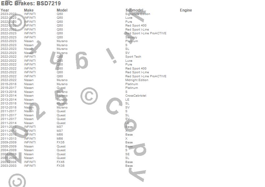 Below is an abreviated list of applications for the BSD Series Sport Rotor w/Ultra Quiet V Slot Configuration.