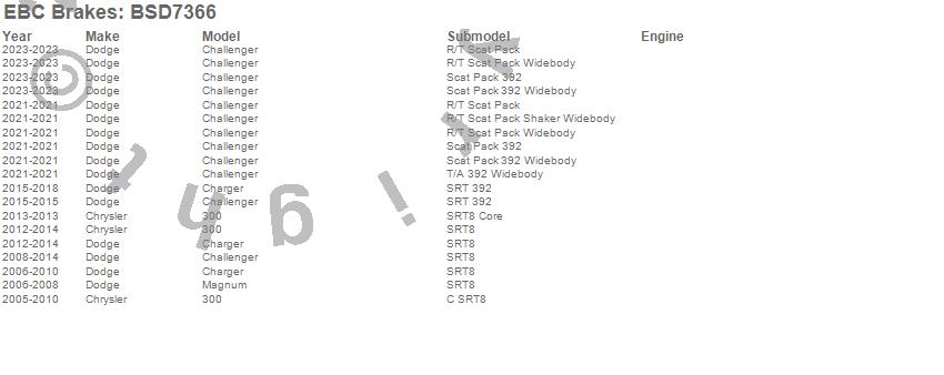 Below is an abreviated list of applications for the BSD Series Sport Rotor w/Ultra Quiet V Slot Configuration.