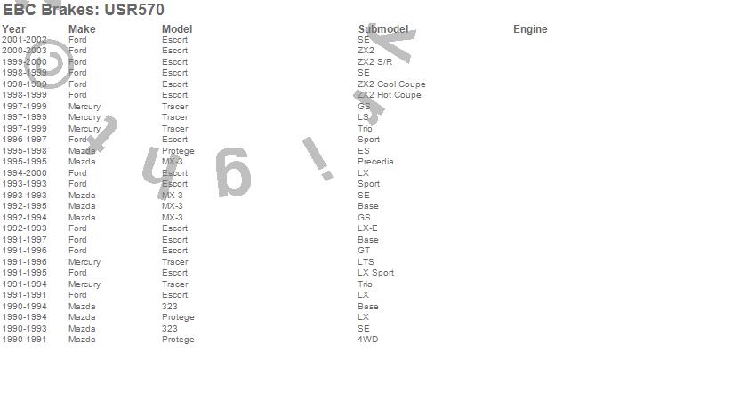 Below is an abreviated list of applications for the EBC USR Series Sport Slotted Rotor.