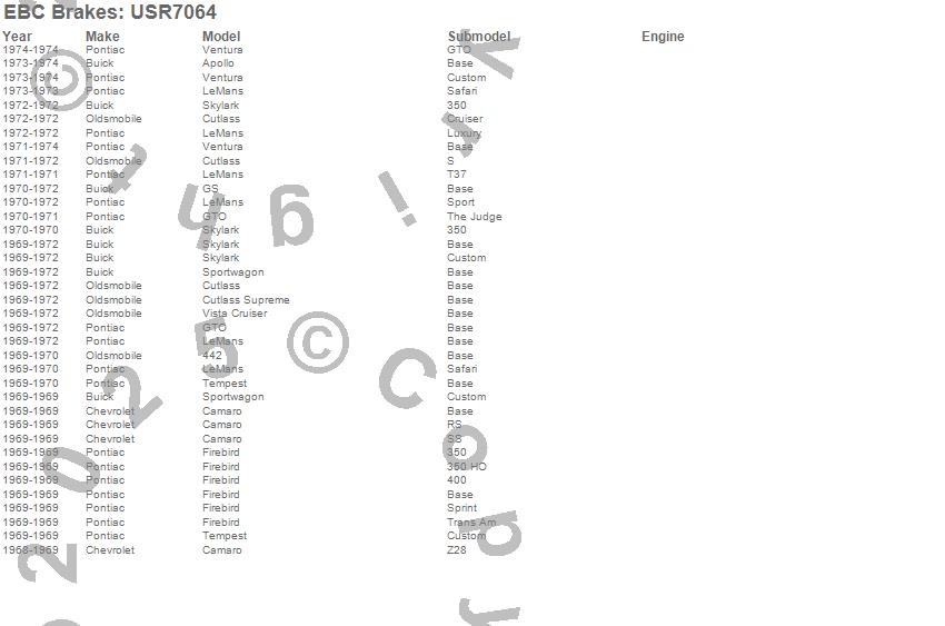 Below is an abreviated list of applications for the EBC USR Series Sport Slotted Rotor.