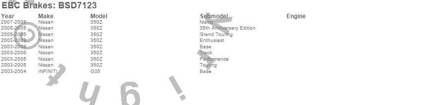 Below is an abreviated list of applications for the BSD Series Sport Rotor w/Ultra Quiet V Slot Configuration.