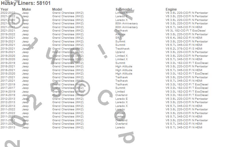 Below is an abreviated list of applications for the Custom Molded Mud Guards.