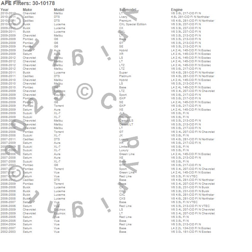 Below is an abreviated list of applications for the MagnumFLOW OE Replacement PRO 5R Air Filter.