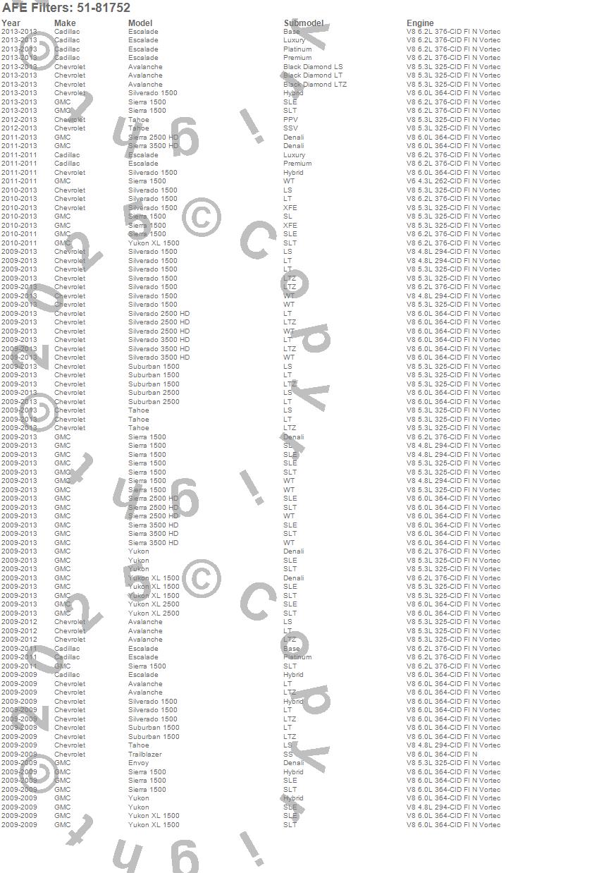 Below is an abreviated list of applications for the MagnumFORCE Stage-2 Si PRO DRY S Intake System.