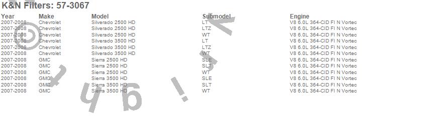 Below is an abreviated list of applications for the Filtercharger Injection Performance Kit.