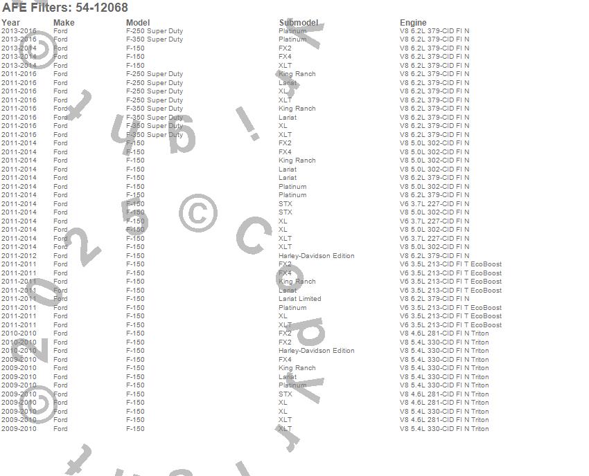 Below is an abreviated list of applications for the MagnumFORCE Stage 2 Cold Air Intake System Cover.