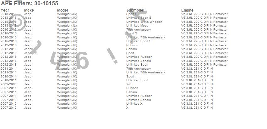Below is an abreviated list of applications for the MagnumFLOW OE Replacement PRO 5R Air Filter.