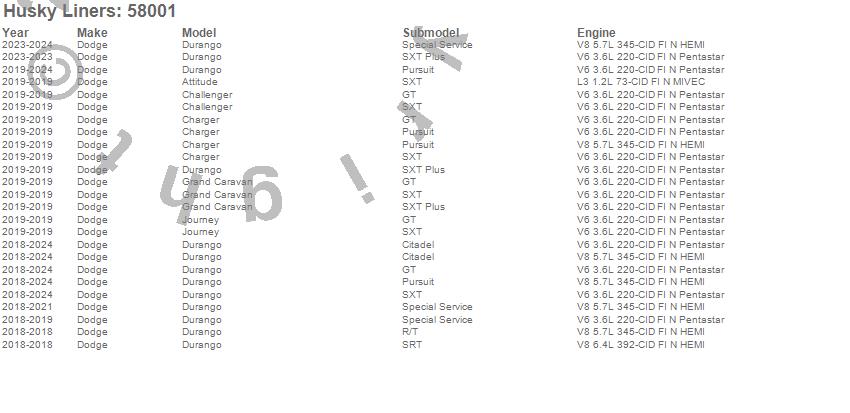 Below is an abreviated list of applications for the Custom Molded Mud Guards.