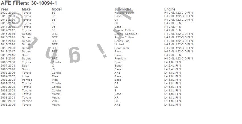 Below is an abreviated list of applications for the MagnumFLOW OE Replacement PRO 5R Air Filter.