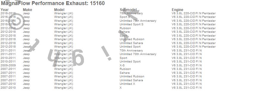 Below is an abreviated list of applications for the MF Series Performance Axle-Back Exhaust System.