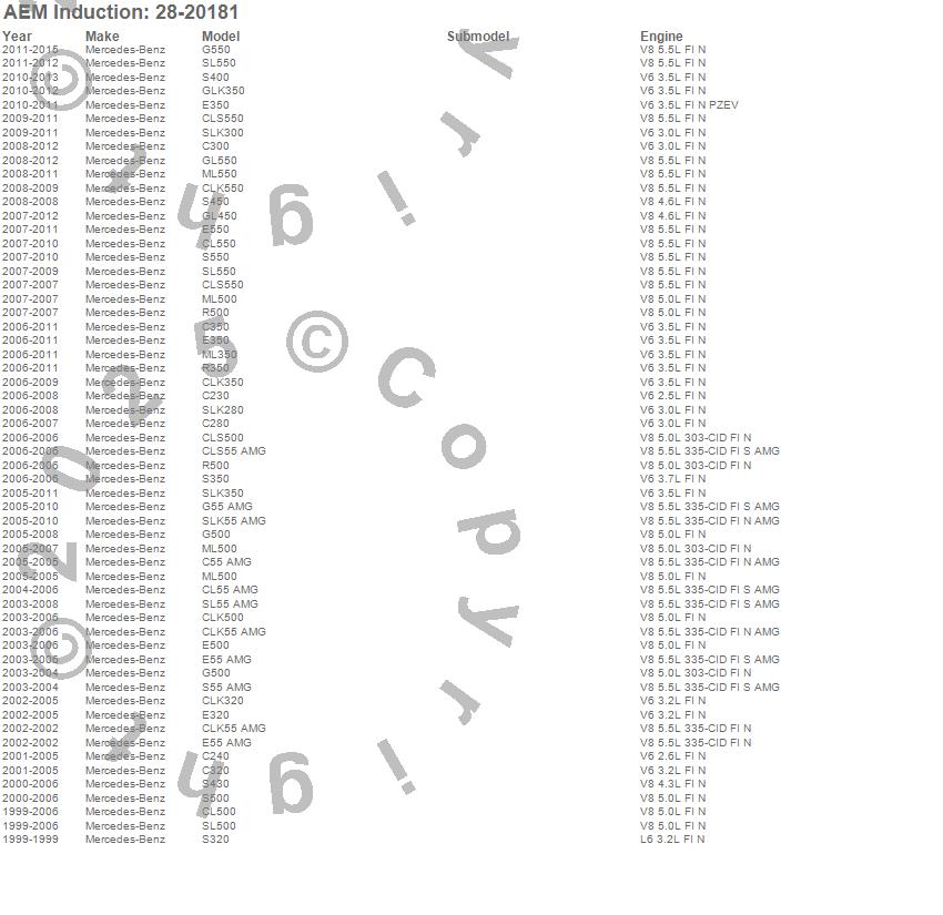 C230, C240, C280, C300, C320, C350, C55 AMG, CL500, CL55 AMG, CL550, CLK320, CLK350, CLK500, CLK55 AMG, CLK550, CLS500, CLS55 AMG, CLS550, E320, E350 more...