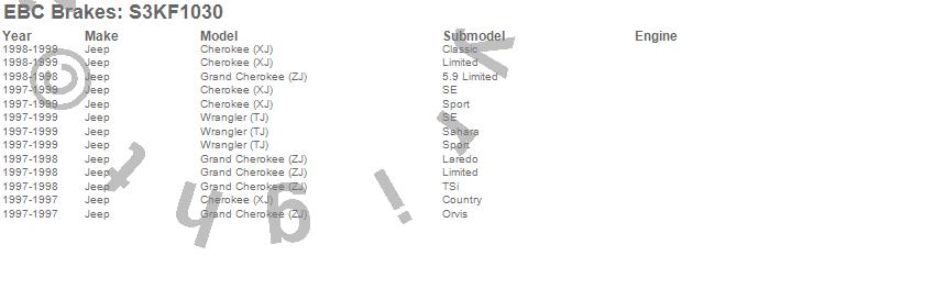 Below is an abreviated list of applications for the S3 Kits Greenstuff 6000 and GD Rotors Truck and SUV.