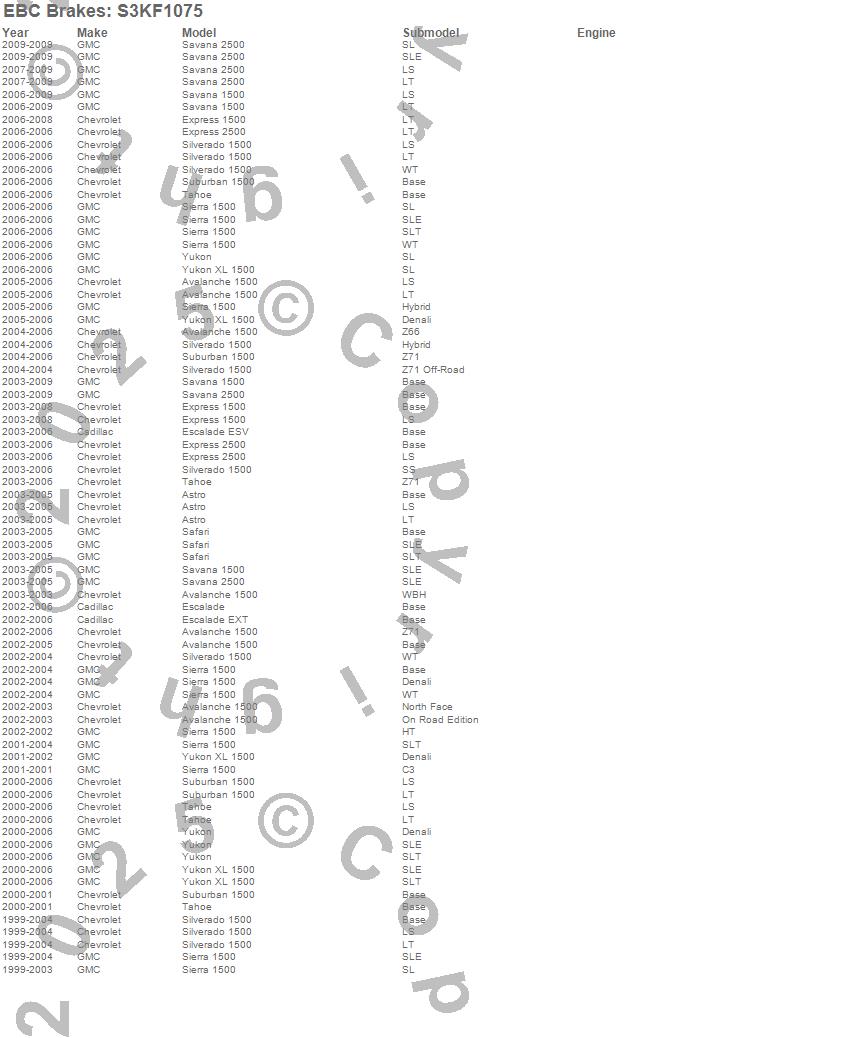 Below is an abreviated list of applications for the S3 Kits Greenstuff 6000 and GD Rotors Truck and SUV.