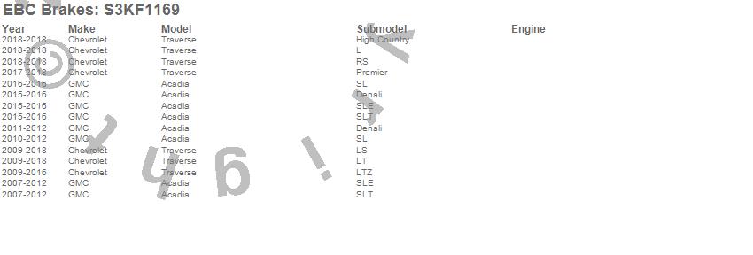Below is an abreviated list of applications for the S3 Kits Greenstuff 6000 and GD Rotors Truck and SUV.