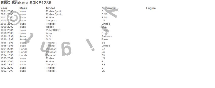 Below is an abreviated list of applications for the S3 Kits Greenstuff 6000 and GD Rotors Truck and SUV.