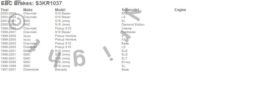 Below is an abreviated list of applications for the S3 Kits Greenstuff 6000 and GD Rotors Truck and SUV.