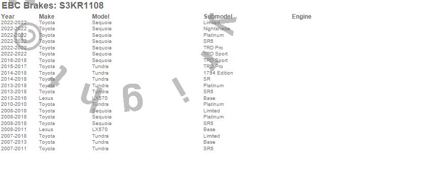 Below is an abreviated list of applications for the S3 Kits Greenstuff 6000 and GD Rotors Truck and SUV.
