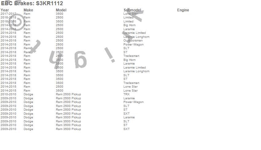 Below is an abreviated list of applications for the S3 Kits Greenstuff 6000 and GD Rotors Truck and SUV.