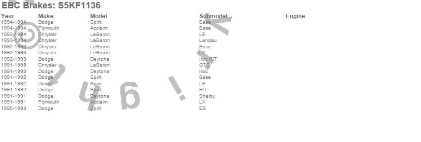 Below is an abreviated list of applications for the S5 Kits yellowstuff And GD Rotors.