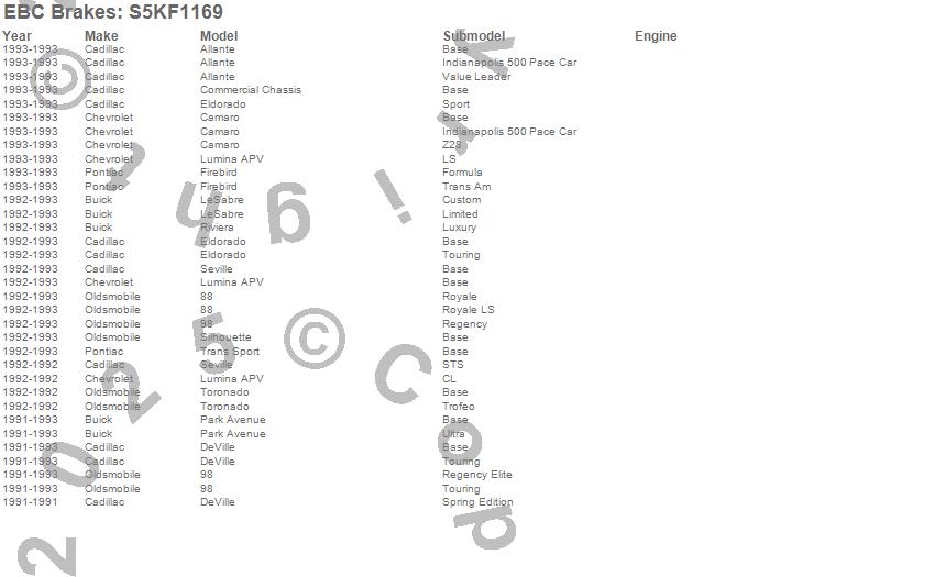 Below is an abreviated list of applications for the S5 Kits yellowstuff And GD Rotors.