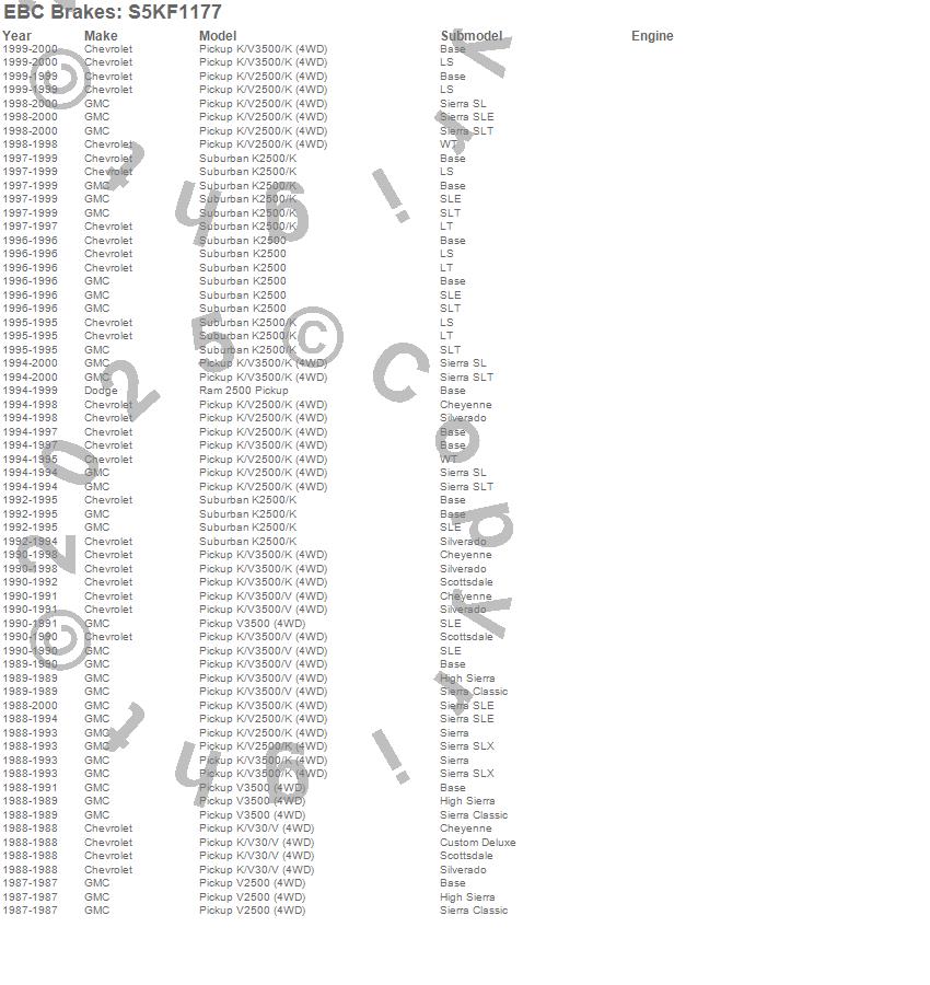 Below is an abreviated list of applications for the S5 Kits yellowstuff And GD Rotors.