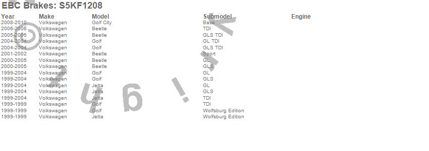 Below is an abreviated list of applications for the S5 Kits yellowstuff And GD Rotors.