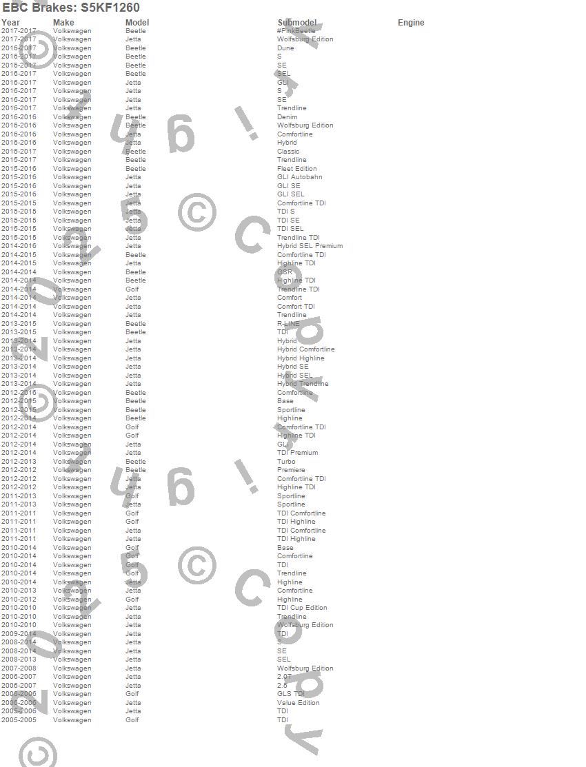 Below is an abreviated list of applications for the S5 Kits yellowstuff And GD Rotors.