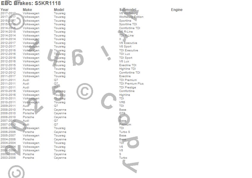 Below is an abreviated list of applications for the S5 Kits yellowstuff And GD Rotors.