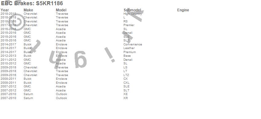 Below is an abreviated list of applications for the S5 Kits yellowstuff And GD Rotors.
