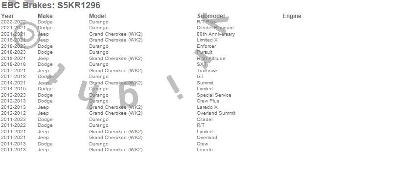 Below is an abreviated list of applications for the S5 Kits yellowstuff And GD Rotors.