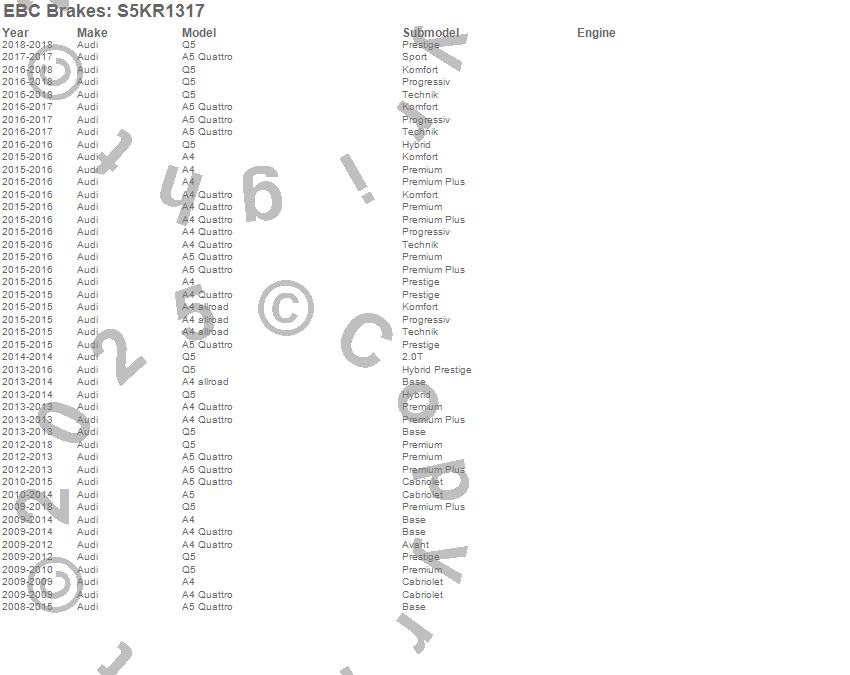 Below is an abreviated list of applications for the S5 Kits yellowstuff And GD Rotors.