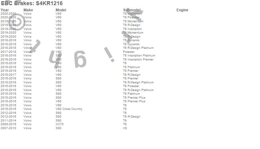 Below is an abreviated list of applications for the S4 Kits Redstuff and USR rotor.