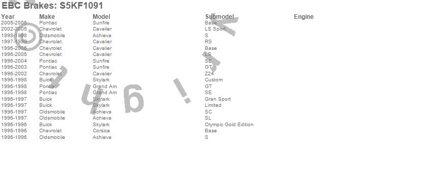 Below is an abreviated list of applications for the S5 Kits yellowstuff And GD Rotors.