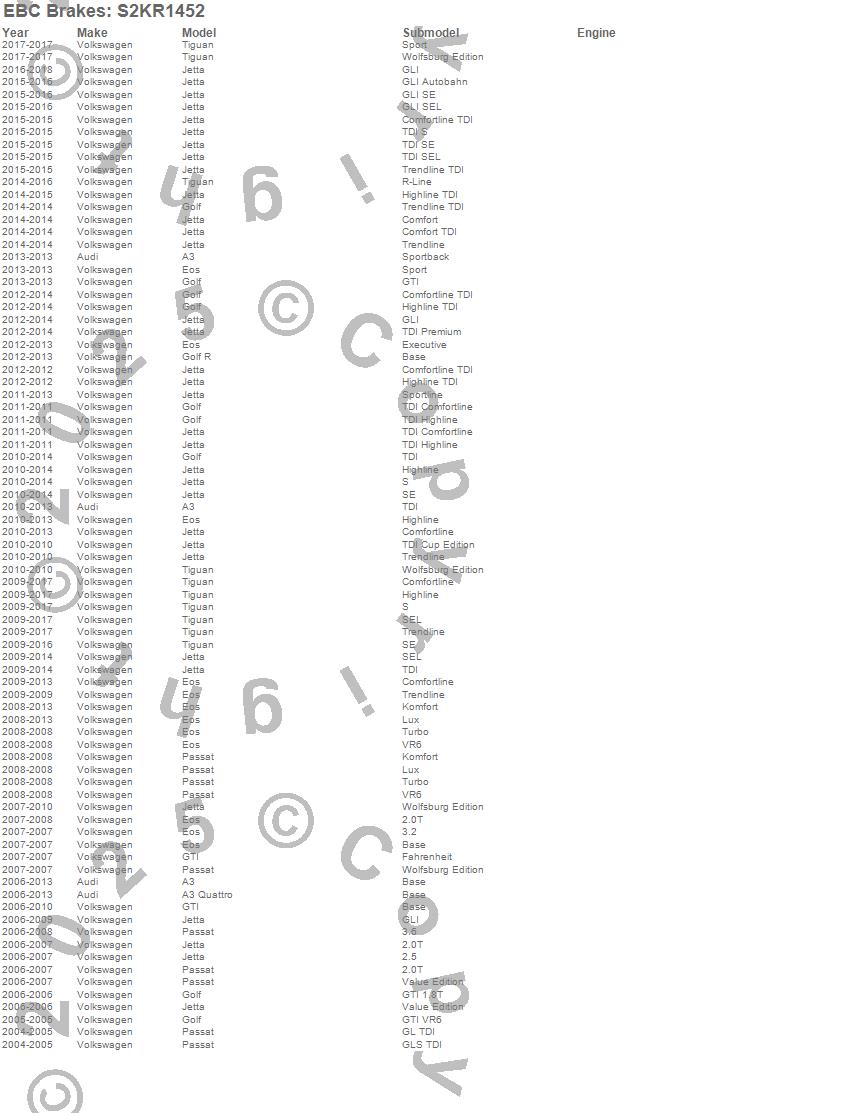 Below is an abreviated list of applications for the S2 Kits Greentuff 2000 and USR Rotors.