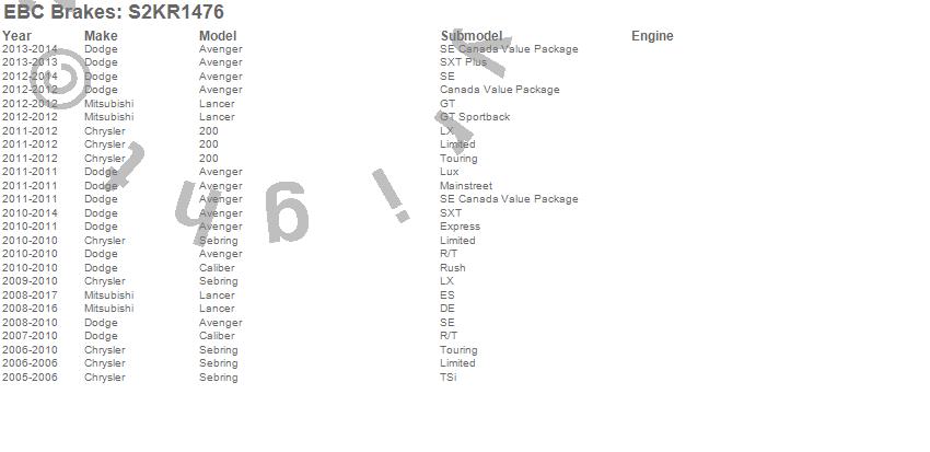 Below is an abreviated list of applications for the S2 Kits Greentuff 2000 and USR Rotors.