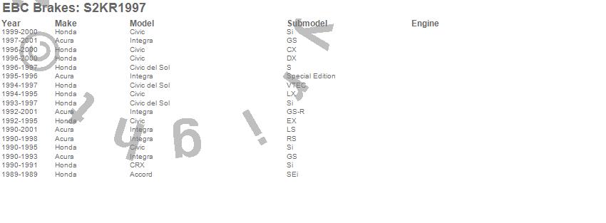 Below is an abreviated list of applications for the S2 Kits Greentuff 2000 and USR Rotors.