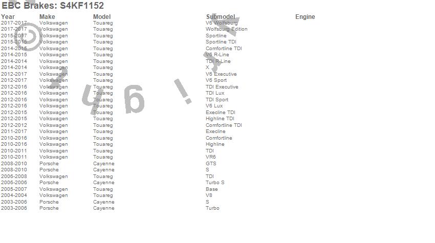 Below is an abreviated list of applications for the S4 Kits Redstuff and USR rotor.