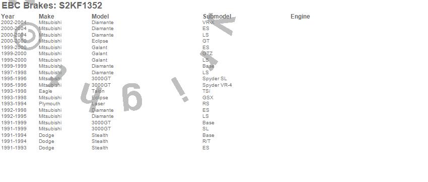 Below is an abreviated list of applications for the S2 Kits Greentuff 2000 and USR Rotors.