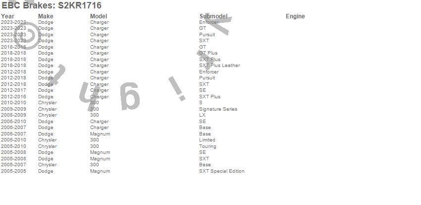 Below is an abreviated list of applications for the S2 Kits Greentuff 2000 and USR Rotors.