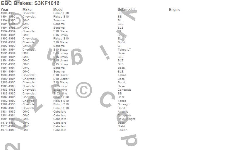 Below is an abreviated list of applications for the S3 Kits Greenstuff 6000 and GD Rotors Truck and SUV.