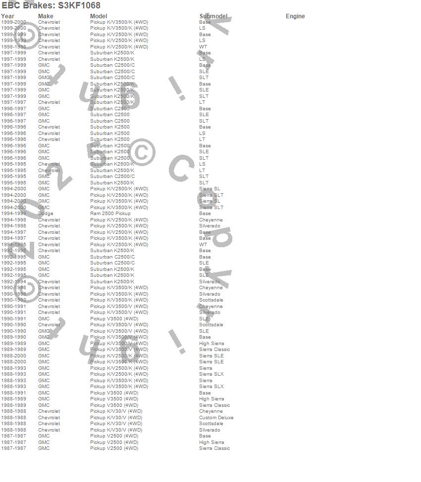 Below is an abreviated list of applications for the S3 Kits Greenstuff 6000 and GD Rotors Truck and SUV.
