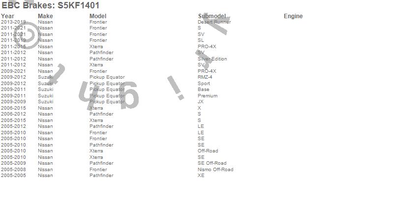 Below is an abreviated list of applications for the S5 Kits yellowstuff And GD Rotors.