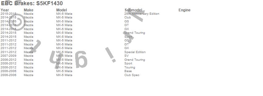 Below is an abreviated list of applications for the S5 Kits yellowstuff And GD Rotors.