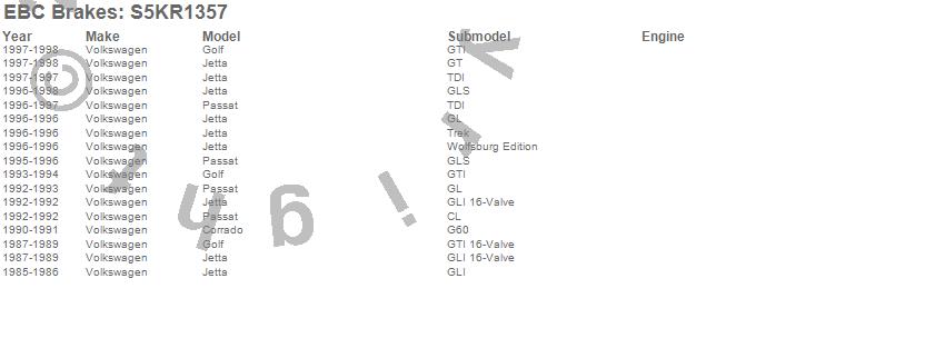 Below is an abreviated list of applications for the S5 Kits yellowstuff And GD Rotors.