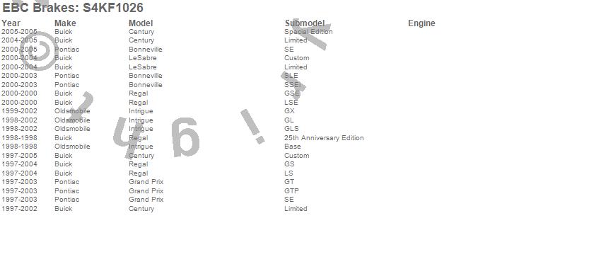 Below is an abreviated list of applications for the S4 Kits Redstuff and USR rotor.