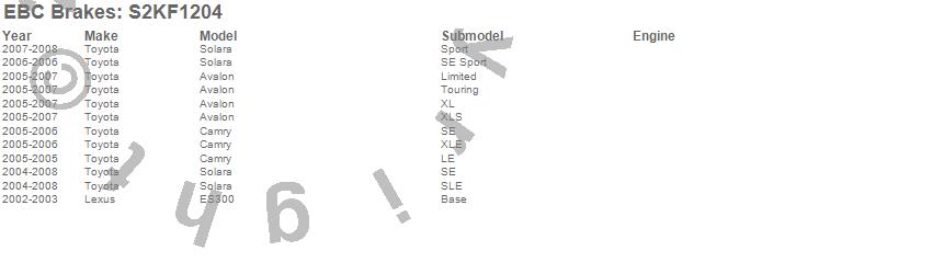 Below is an abreviated list of applications for the S2 Kits Greentuff 2000 and USR Rotors.