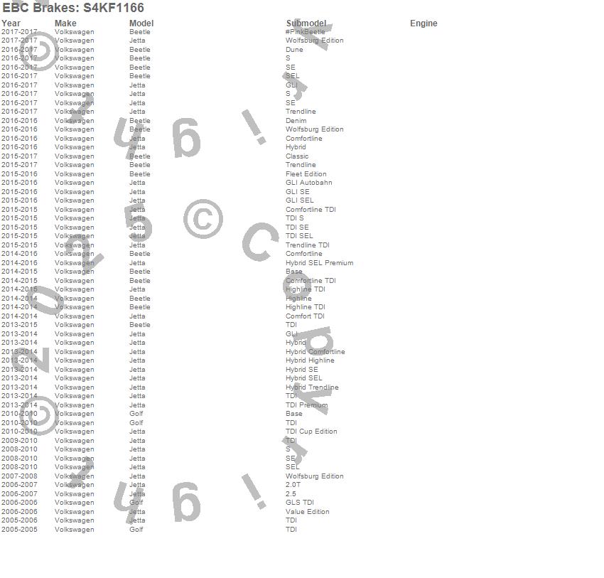 Below is an abreviated list of applications for the S4 Kits Redstuff and USR rotor.