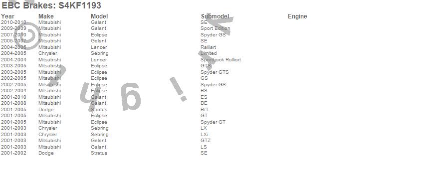 Below is an abreviated list of applications for the S4 Kits Redstuff and USR rotor.
