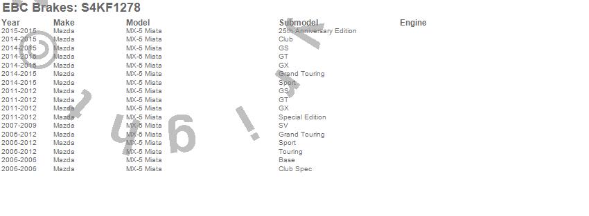 Below is an abreviated list of applications for the S4 Kits Redstuff and USR rotor.