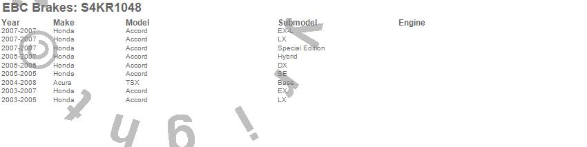 Below is an abreviated list of applications for the S4 Kits Redstuff and USR rotor.